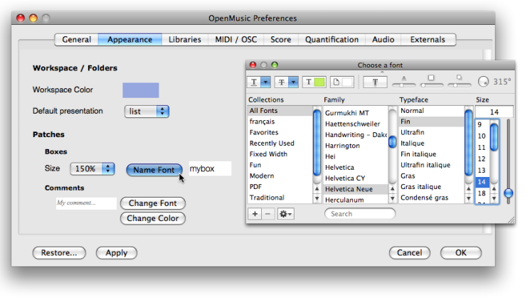 The font style and icon size can be globally specified via the OM preferences.